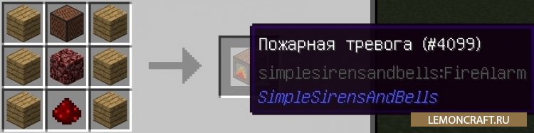 Мод Simple Sirens, Alarms and Bells добавит в игру различные блоки, задачей которых является оповещение игрока различными звуковыми сигналами. Например будут добавлено два тревожных блока оповещающих о пожаре и просто о тревоге и две сирены, одна оповещает о торнадо вторая предупреждающая.